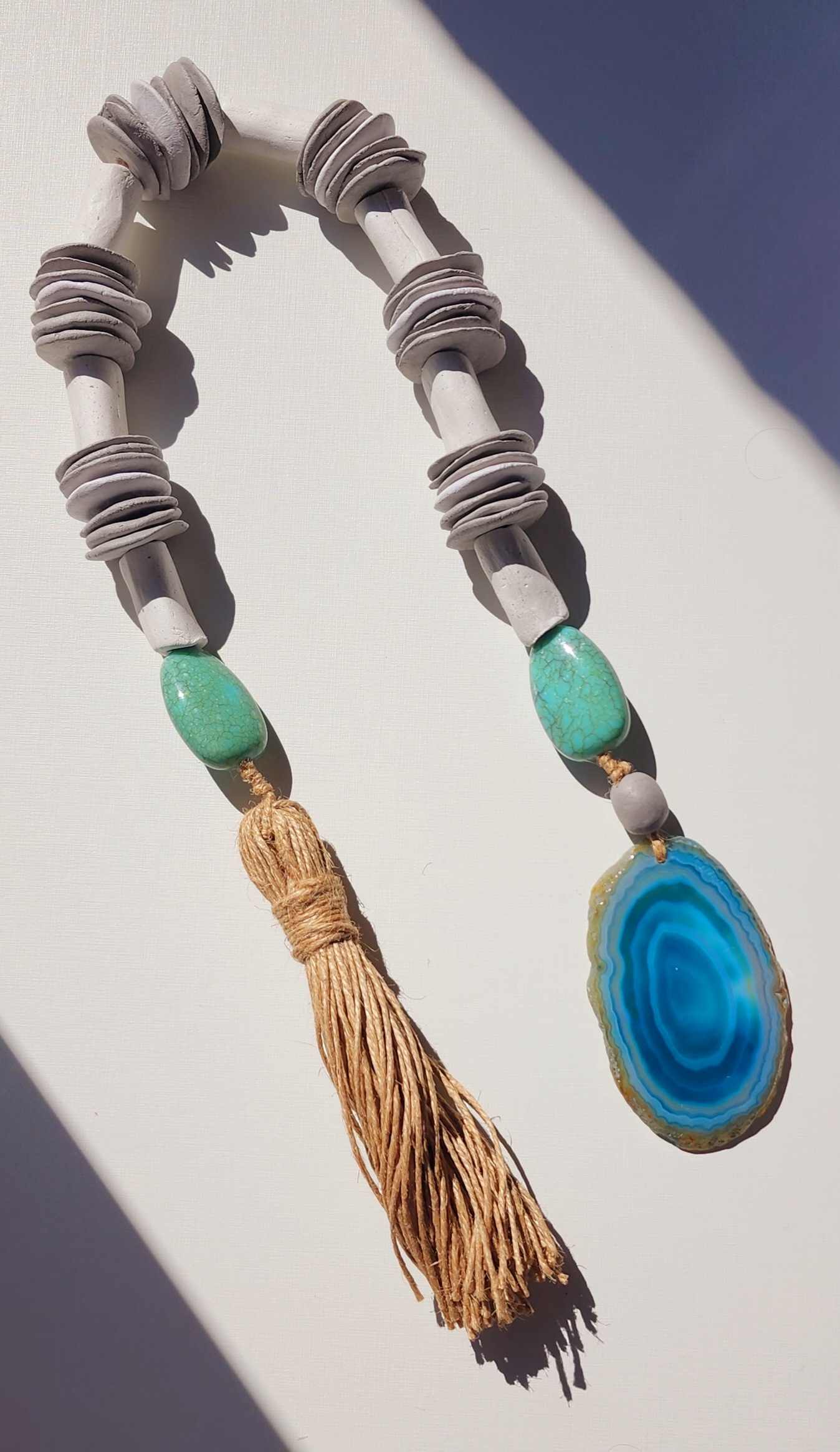 Colar de Mesa ou colar decorativo de ambientes com pedra azul.