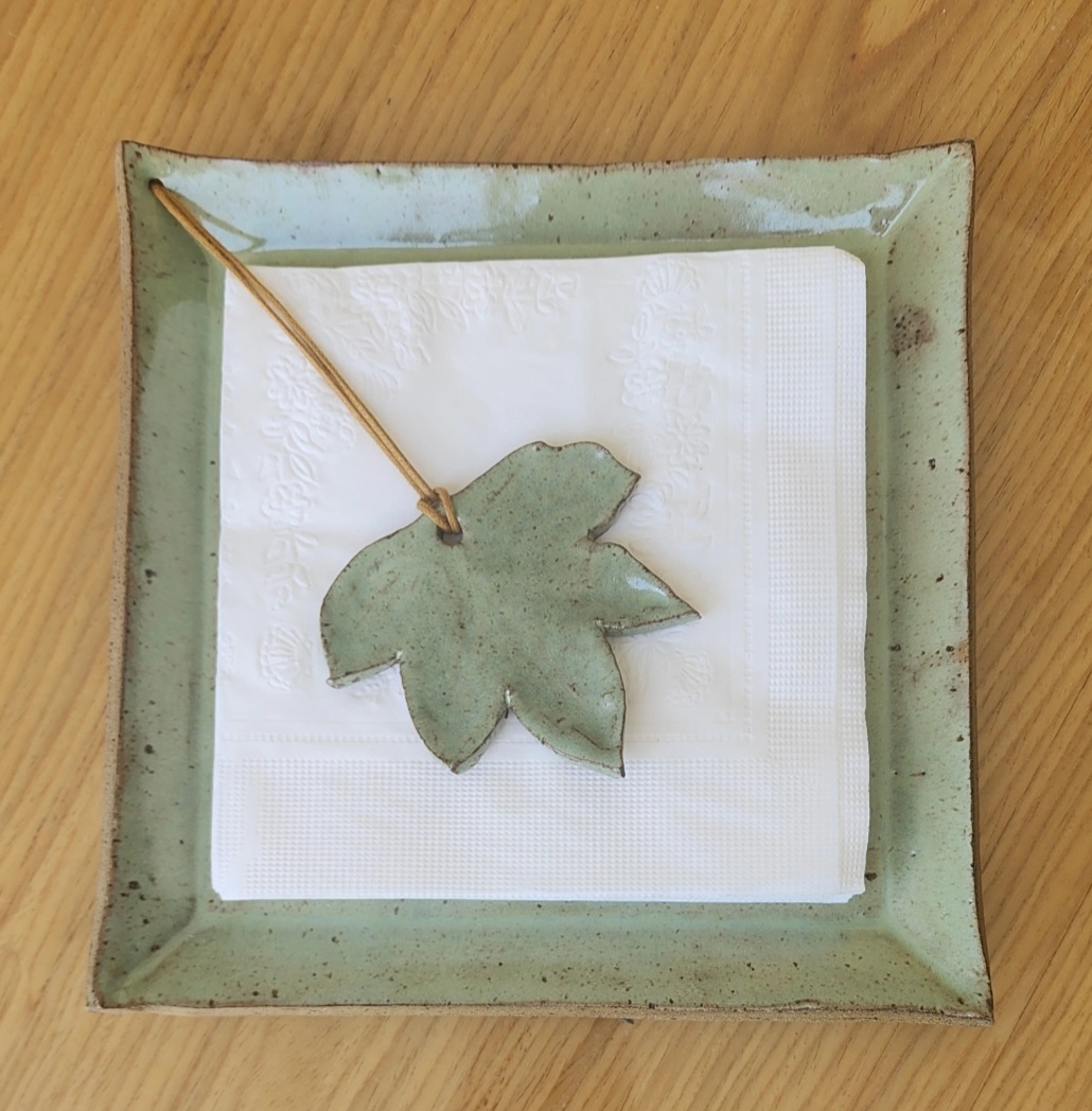 Porta guardanapo em cerâmica artesanal de alta temperatura na cor verde cana.