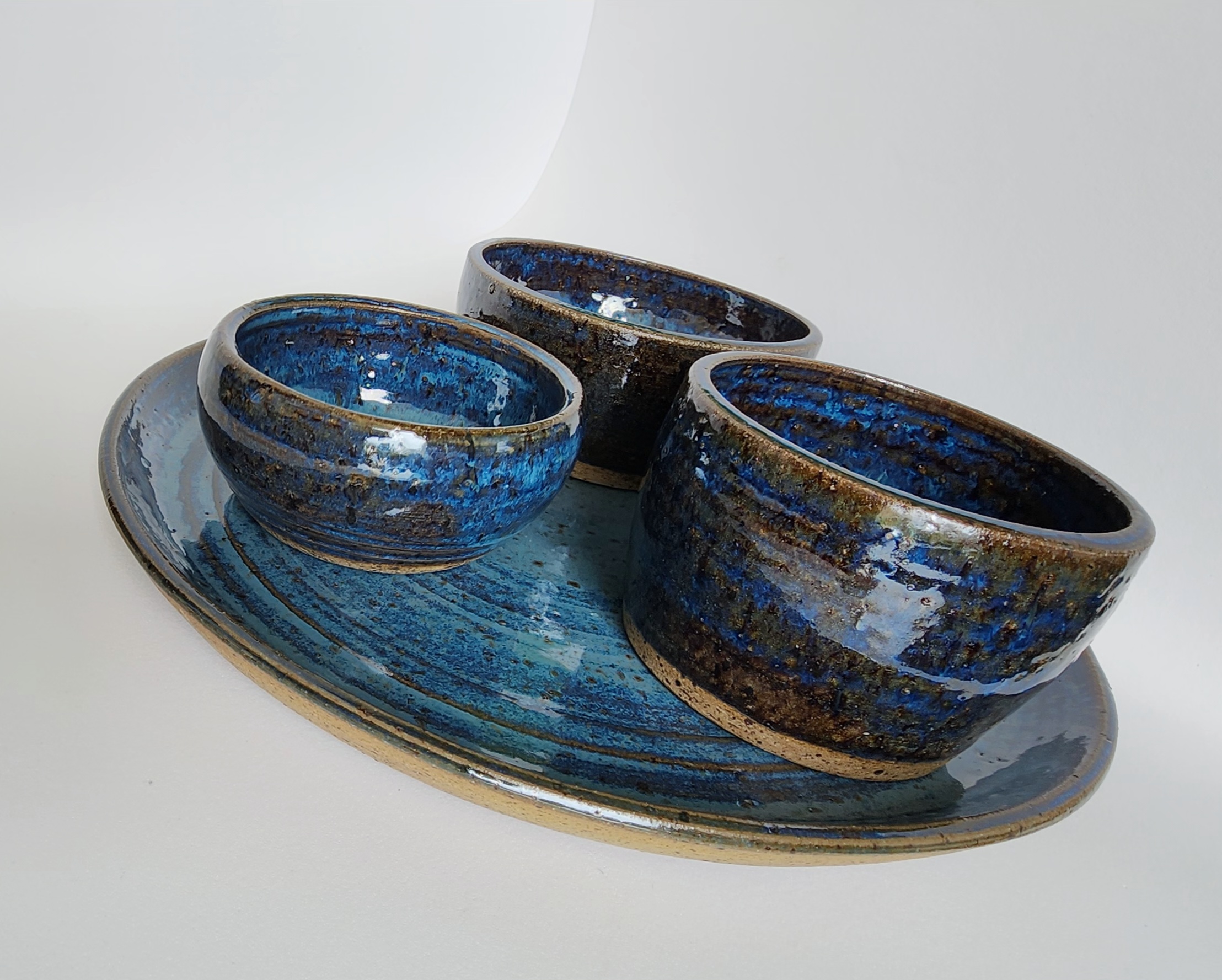 1 Prato bolo azul onda em eramica artesanal de alta temperatura.
